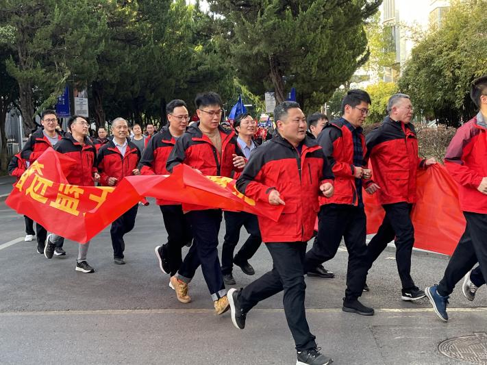 在公司全体领导班子的带领下,公司长跑队伍在18号楼前整装出发,气质昂扬地前往明故宫校区体育场。发令枪响后,公司长跑队伍整齐有序、精神抖擞地出发了。伴随着一声声“逐梦蓝天、矢志一流”的嘹亮口号,每个人迈着有力的步伐,脸上洋溢着欢乐的笑容,尽情地享受运动带来的快乐。