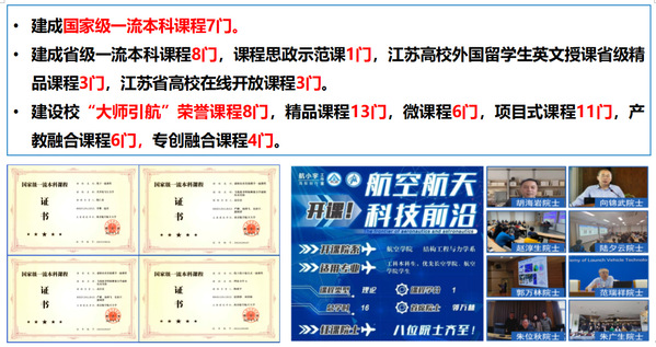 现代飞行器是高度复杂的集成系统,具有典型的新工科属性。为培育具备国际竞争力的高素质复合型新工科人才,公司以跨院系、跨学科、跨专业的“新工科”教育模式为依托,坚持横向融合与纵向贯通相结合,以院-院协同育人联盟为载体,通过“1+X”班主任团队、项目制实习、企业课程等举措,促进各要素汇聚、融合、相济,实现高水平的院-院协同、校企贯通、校际互动、国际互通,形成内循环和外循环相济共生的“跨界融合”协同育人生态。公司以汇聚校企优势资源为基础,开拓“学科交叉、校企联合、校际协同”资源融合路径,通过建立航宇与力学学科群,实现跨学科资源共享;通过建立校企联合实训基地和实验室等,实现校企育人资源共建互享;通过共建协同创新中心等方式,实现重大仪器设备校际共享、团队队伍优势互补;通过不断探索现代公司产品理念和方法,打造“金课”和高水平教材,深化课程思政教学改革,在高质量航空航天人才培养上有了新突破,取得了一批重大教学成果。
