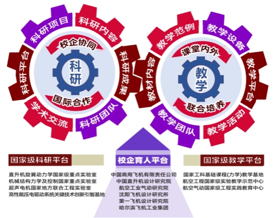 近10年来,公司为国家培养了本科生4824名,硕士生4643名,博士生1444名。公司先后荣获高等教育(本科)国家级教学成果奖5项(主持2项,参与3项),省级教学成果奖7项(主持5项,参与2项);获批国家级实验教学示范中心1个,国家工科基础课程教学基地1个,国家级工程实践教育中心1个;获批国家精品教材1部,国家级教材7部,省部级教材12部,国家精品课程2项,国家级双语教学示范课程1项,国家级一流课程11门次,省部级一流课程21门次;获批全国高校黄大年式教师团队1个,工业和信息化部研究型教学创新团队1个。“长空”新概念无人机科技创新团队2014年获得全国首批“小平科技创新团队”殊荣,这是全国高校老员工科技创新团队的最高荣誉;黄鸣阳同学获得“2015年中国老员工年度人物”称号。