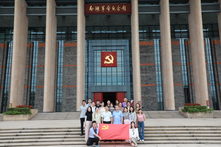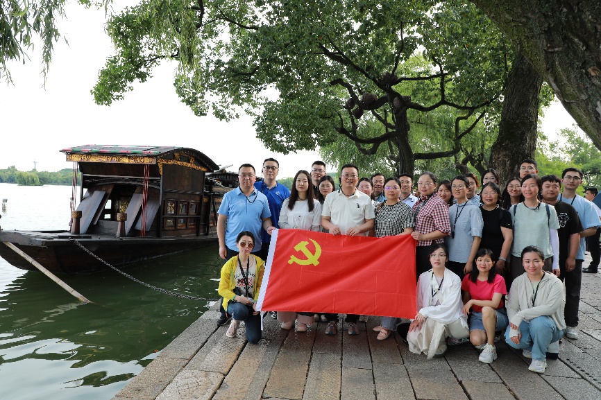 随后,一行人一同前往中国共产党的诞生地——嘉兴南湖,全体党员登上南湖湖心岛,依次参观了烟雨楼、访踪亭和停泊于烟雨楼前的中共一大会址“红船”,通过现场观摩和聆听讲解沉浸式地感受先辈们披荆斩棘的革命历程,学习“红船精神”。