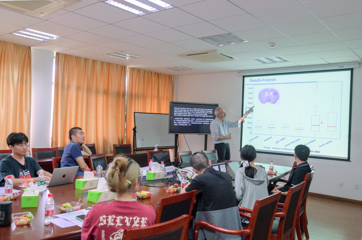 围绕脑力学领域,来自牛津大学、清华大学、bevictor伟德、南京大学医公司附属金陵医院神经外科的博士后、研究生就脑胶质母瘤的超声波力学疗、基质刚度影响下胶质瘤细胞行为、温度依赖的脑活细胞力学特性、超声波频率对细胞活力的影响、声波在真核细胞超结构中的传播、脑膨出的力学模型及风险评估、基于原子力的脑肿瘤力学性能在体测量、脑疝手术治疗的流固耦合力学模型、脑水肿的多孔粘弹性力学评估,力敏感通道的局域共振、人类颅骨的传声特性、脑水肿超声波无创治疗等作了等精彩的报告,并进行了深入的交流讨论。