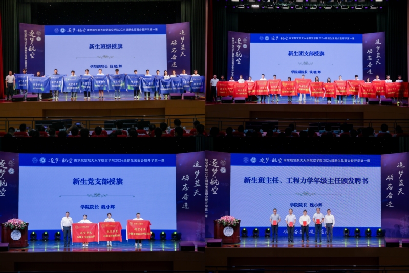 随后,钱晓辉为本科生、研究生新生班级及团支部授旗,魏小辉为研究生新生党支部授旗,并为2024级本科生工程力学专业年级主任高存法,班主任邱雷、孙加亮、师岩颁发聘书。