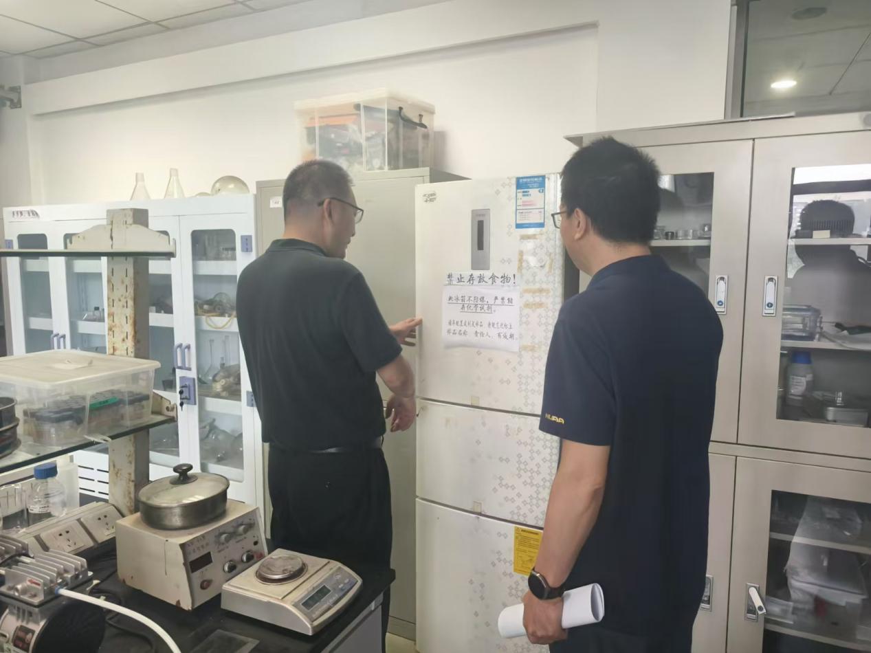 在公司党委书记卜建和经理魏小辉的带领下,公司全体领导班子成员分时段、分区域深入一线,和公司党政办工作人员、各系所安全员一并对各系所实验室、教研室、公共区域、施工现场进行了走访和巡察。检查组严格按照安全生产相关规定和标准,对实验室的仪器设备、化学品存储、用电安全、消防设施、应急疏散通道等关键环节进行了重点排查,并详细询问了各实验室的安全管理制度执行情况和应急预案准备情况。