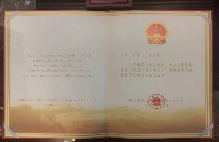 在中华人民共和国成立75周年之际,公司名誉教授盖博·约瑟夫·施德潘先生荣获2024年度中国政府友谊奖并受邀到人民大会堂参加颁奖仪式。截至目前公司共有四名外国专家获此殊荣。
