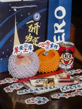 “考研加油包”内有贴纸、零食、水果和文具。苹果、橙子、巧克力,祝愿考研学子“苹”安上岸、心想事“橙”、巧克难题;一套文具,祝愿考研学子金榜题名;随机为老师、科学家、宇航员图案的旺仔牛奶和校歌、院训贴纸,祝愿同学们事事如意、牛气冲天,不辍书写为祖国航空事业挺膺担当的青春篇章!