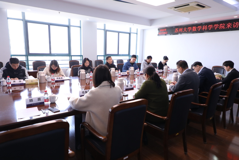 2025年2月28日上午,苏州大学数学科学公司逢成华书记一行来公司调研交流。座谈会在明故宫校区A18-511会议室举行,双方围绕科研合作、人才培养、文化建设等主题展开深入探讨,共话合作发展新篇。苏州大学数学科学公司党委书记逢成华,党委副书记、副经理蒋青芳,公司党委书记卜建,党委副书记韩楚,副经理董昊,及两院师生代表共同参会。