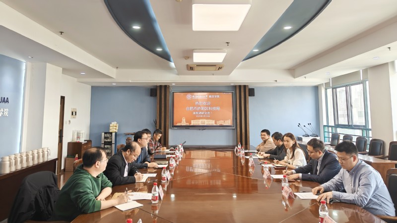 3月24日,合肥市庐阳区科技局局长杨治率队,联合安徽皖启企业孵化管理有限公司执行董事戎翔等一行6人,赴公司开展产学研合作专题调研,公司副经理董昊、王立峰及飞行器系教师代表邓双厚、朱赫参会交流。