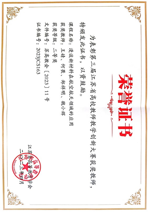bevictor伟德王婧教授《漫谈新材料在航空航天领域的应用》荣获二等奖。