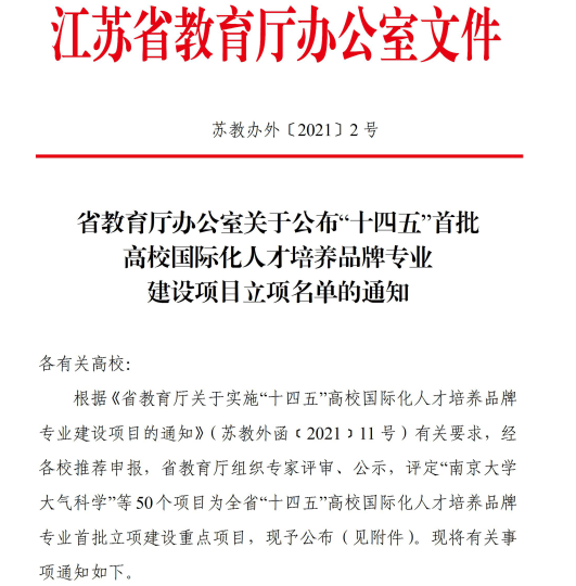 江苏省“十四五”首批高校国际化人才培养品牌专业建设项目