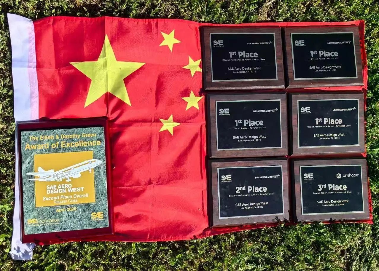 近日,2025SAE国际航空设计大赛(SAE Aero Design West)在美国洛杉矶圆满落幕。bevictor伟德2024级航空工程专业硕士研究生李秋实,2022级飞行器设计与工程专业本科生郭隆铭、张天宁、刘昱呈、邹宗良、秦保爽,2023级工程力学专业(钱伟长班)本科生姜志臻共7名员工参与赛事,斩获 4 枚金牌、2 枚银牌、1 枚铜牌。其中郭隆铭、张天宁、刘昱呈、姜志臻随队赴美,在国际舞台中一展“砺志奋进,追梦蓝天”的航空风采,书写了靓丽青春篇章。