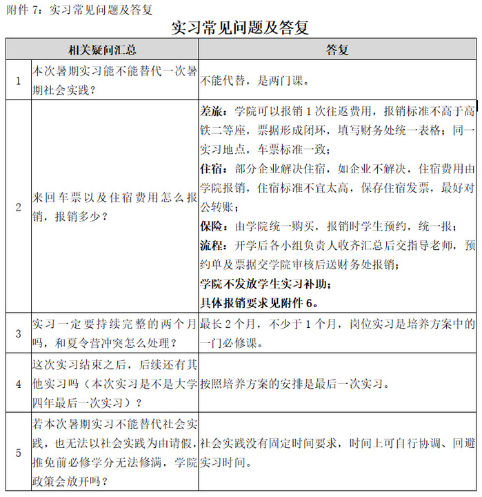附件7:实习常见问题及答复
